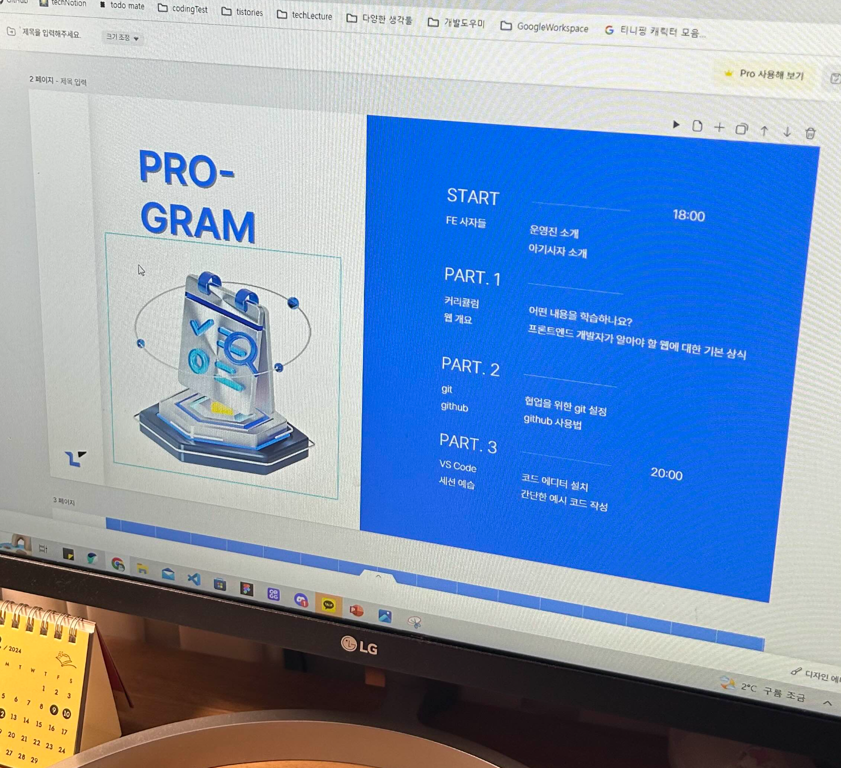 2차시엔 다른 프론트 운영진이 html, css, js에 대한 간략한 세션으로 진행을 준비했었다.