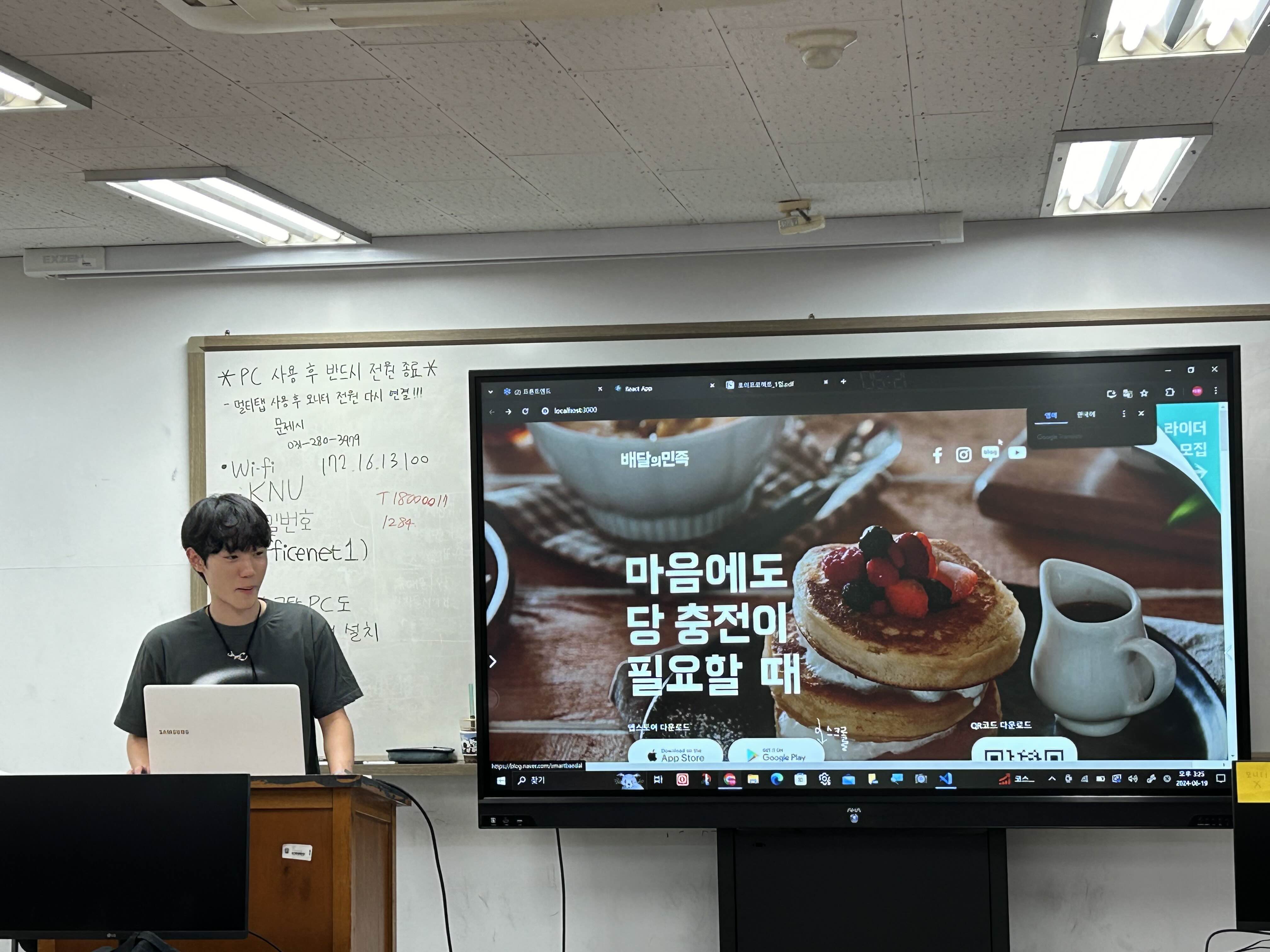 2팀은 배달의민족 홈페이지를 클론 코딩하여 완성도 높게 만들어냈다.