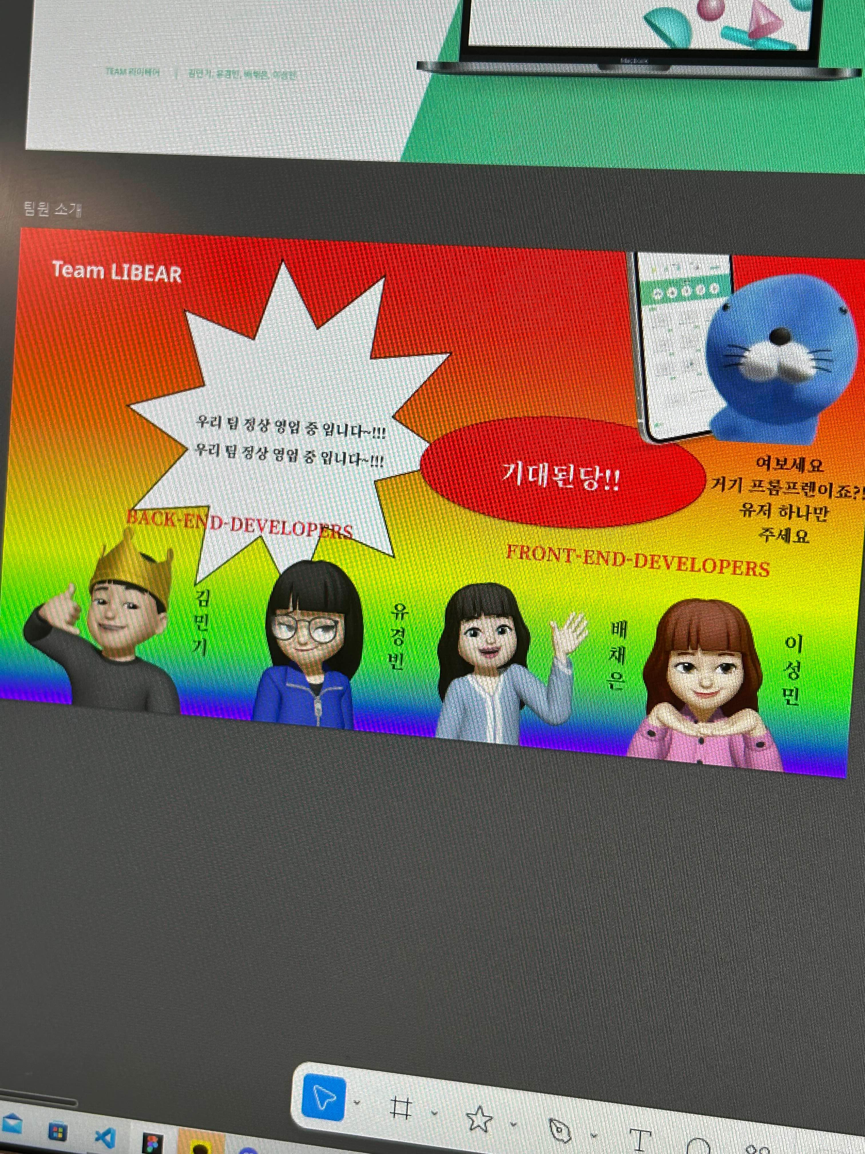 세션을 마무리하며 프론트엔드 팀의 토이 프로젝트 발표를 진행했다.