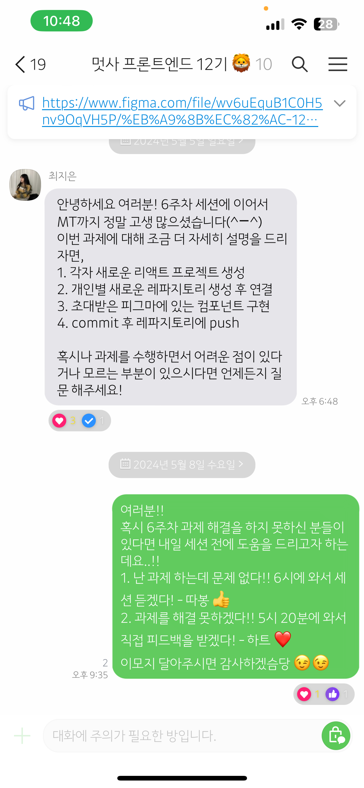 그래도 초반에 운영 관련해선 대표와 부대표가 많은 노력으로 전반적인 관리를 해주어서 나는 세션 준비에 많은 시간을 할애할 수 있었다.