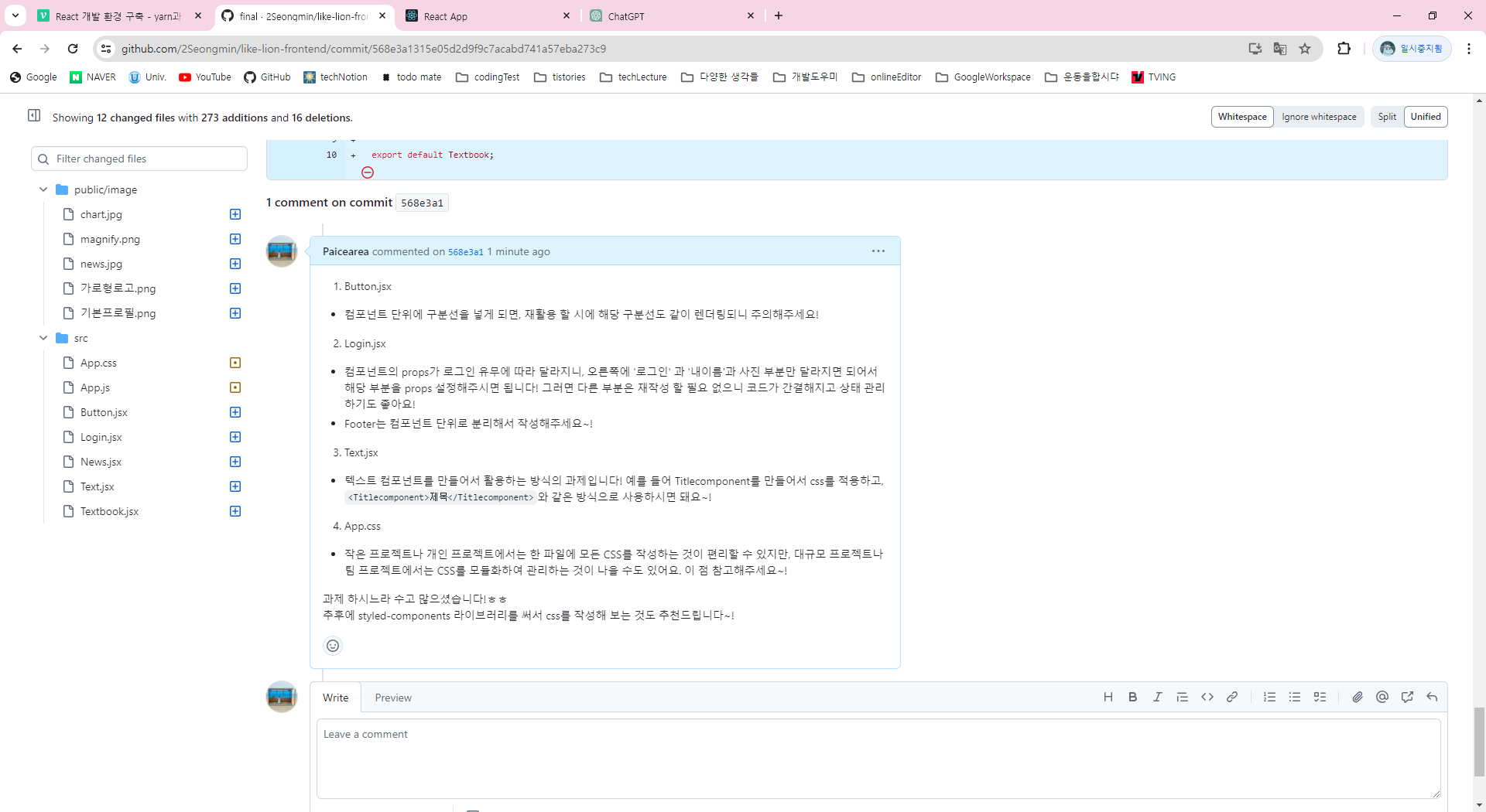 서로의 코드를 비교하고 개선점을 함께 찾아보는 과정이 꽤 의미 있었다.